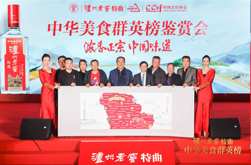 泸州老窖股份有限公司监事会主席伍勤,石家庄泸州老窖特曲酒类销售有限公司总经理杨明,石家庄泸州老窖特曲酒类销售有限公司副总经理钟洋,河北广播电视台影视剧频道副总监周兴涛,中国社会艺术协会当代艺术委员会秘书长邢昆仑,以及元老级中国烹饪大师、河北省烹饪协会秘书长、中烹协大赛评委周书存,国家级资深注册烹饪大师、国际级资深评委、河北省烹饪协会副会李玉伟,国家级烹饪大师、中国烹饪协会名厨专业委员会委员、河北省烹饪大师王国旗,国家级烹饪大师、河北省烹饪协会副会长、河北省烹饪高级资深评委戴盛,河北省烹饪大师、第五届全国烹饪大赛冠军白加旺,中国烹饪名师、河北省烹饪大师、冀字号名厨安小东,省级高级烹饪工人技师、河北省烹饪协会副会长、河北师范大学烹饪学院名誉教授王俊武七位大师汇聚一堂,见证了这场酒食融合的文化盛会。