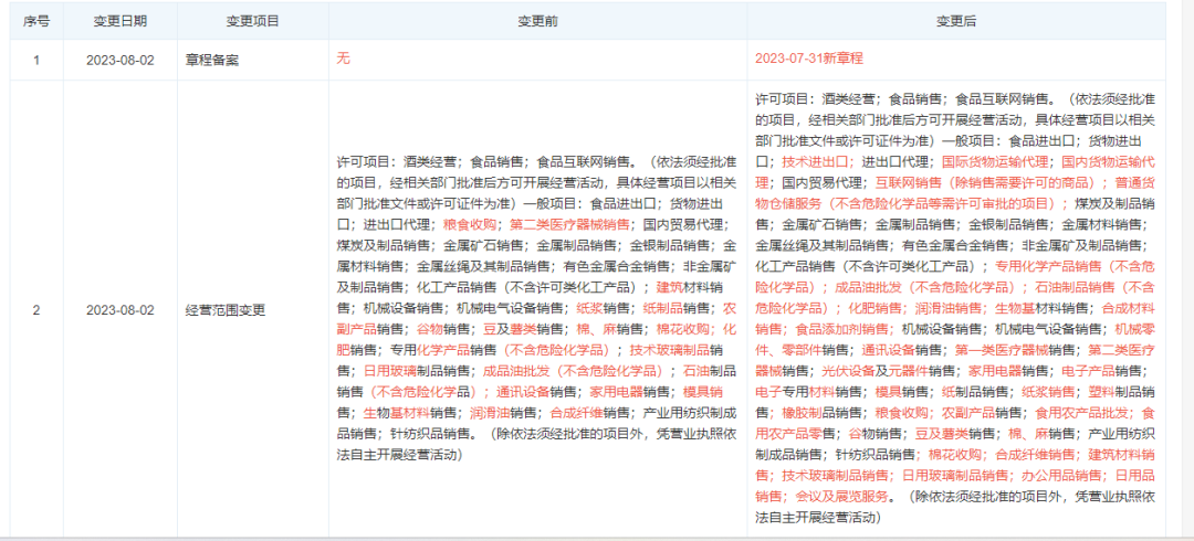 五粮液在光伏领域布局又有了新进展!天眼查显示,8月2日,四川省宜宾五粮液集团进出口有限公司发生工商变更,经营范围新增光伏设备及元器件销售、第一类医疗器械销售、电子产品销售、