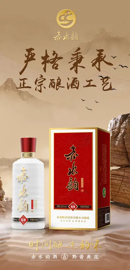赤水韵是中国的韵,是赤水河畔流淌的韵。承载着中国文化的灵魂,珍藏着赤水文化的瑰宝。在酱酒新时代的浪潮中,赤水韵酒正秉承大国风范,缔造强国使命,成为中国酱酒文化中一张耀眼名片,为此受到众多高净值人群、资深酱粉的高度信赖。伴随着大国崛起,赤水韵酒也如同奔流不息的赤水河不断前行。未来,赤水韵酒将带着深度的文化自信和民族自豪走向全国,迈向世界,为世界带来一瓶高品质酱酒,让世界感受中国百年酱酒文化。
