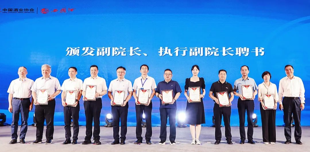 杨广亭为朱蓓薇院士、宋书玉理事长颁发了中国酿酒原料及品质安全研究院院长、名誉院长聘书;宋书玉、景耀平为江南大学教授徐岩、中国食品发酵工业研究院副院长郭新光、西北大学食品科学与工程学院院长岳田利、西北农林科技大学食品学院院长吕欣、天津科技大学生物工程学院院长罗学刚、江南大学研究员范文来,陕西科技大学食品科学与工程学院院长李国梁、西凤股份公司总技术顾问贾智勇,国家级白酒评委、国家酿酒大师王科岐,西凤股份公司总工程师冯雅芳颁发了中国酿酒原料及品质安全研究院副院长、执行副院长聘书;朱蓓薇、张昭为陕西科技大学校长李志健,天津科技大学校长路福平,中国酒业协会白酒技术创新战略发展工作委员会秘书长王旭亮,西北大学城市与环境学院院长宋进喜,陕西科技大学农产品加工技术研究院院长陈雪峰,天津科技大学生物工程学院副院长张翠英,复旦大学工程与应用技术研究院特聘教授孙云权、西北农林科技大学生命科学学院副教授秦宝福颁发了中国酿酒原料及品质安全研究院首席科学家聘书。