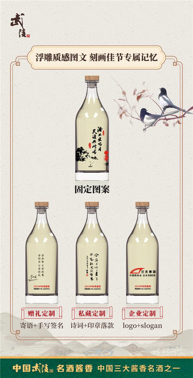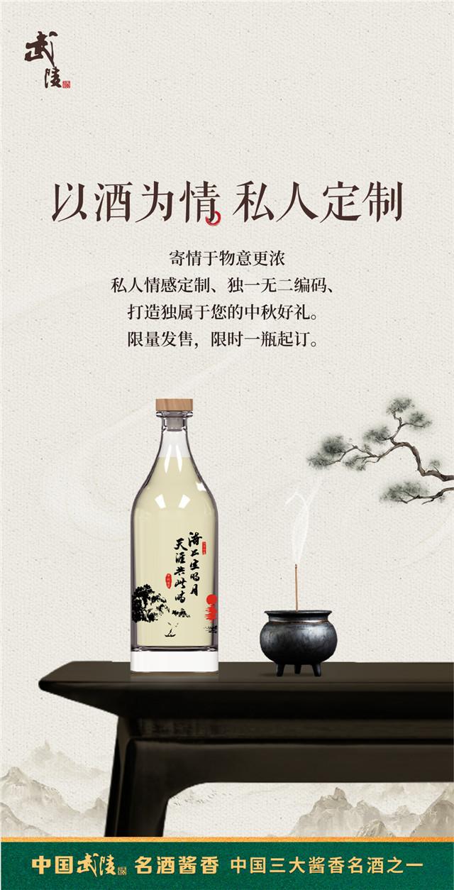即日起,中国名酒武陵酒针对中秋佳节提供“一瓶定制”服务,以1000ML的琥珀产品为定制原型,个性化定制后和与琥珀1000ml雕刻版售价持平,且在任何销售点都能按要求定制,只需门店提交定制信息,即可获得一份拥有极强设计辨识度与个性,同时还兼具收藏价值和升值空间,融实用性、纪念性、珍藏性于一体的专属中秋酒礼。