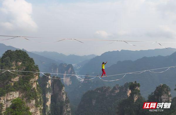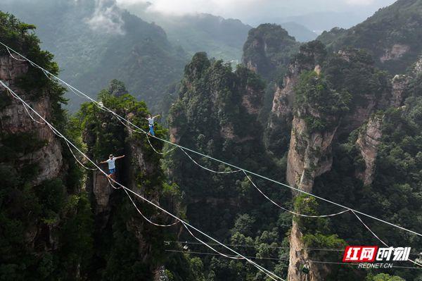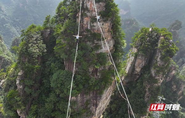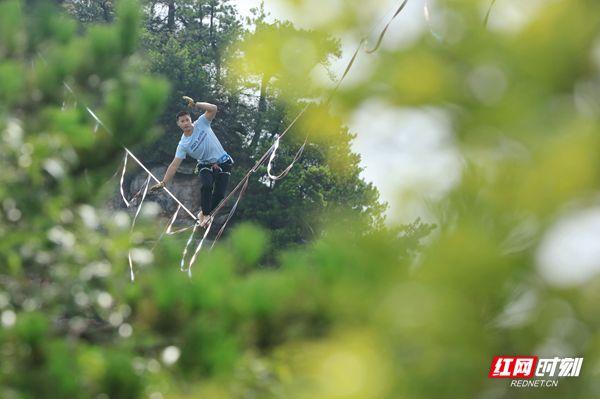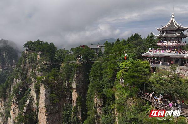 8月21日,“武陵源酒”2023年张家界黄石寨扁带赛在张家界国家森林公园开赛,来自中国、法国、西班牙等国家和地区的12名选手在海拔1092米高的黄石寨山峰之巅惊险竞技。比赛为期两天。