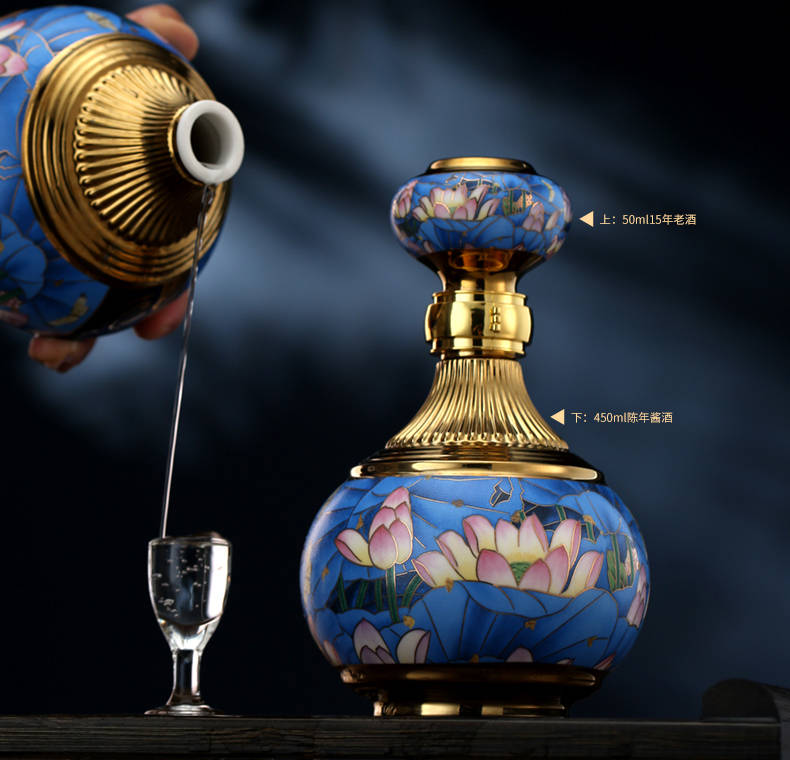 瓶身画面以“泥金飞彩”之父张闻冰、拍出18.4万元的《荷气衣香》为原型创作,完美呈现张闻冰陶瓷镶器《荷气衣香》的神韵,画面中有荷花、有苍穹、有彩蝶,还有各式各样的在天地间象征万物生长的各种景色,呈现了一种晚风清凉,碧荷芳华的意境,整体给人一种出淤泥而不染的高尚情怀。