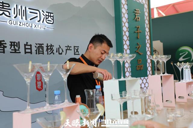 这是今年23岁的秦金峰第一次参加酒博会,毕业两年的他和伙伴们带来了来自贵州黔韵酒厂的“大掼潮·酒”。