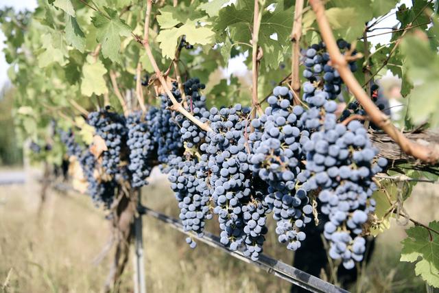 酒庄内有葡萄种植园2000亩,眼下多数葡萄已采摘下架。位于品种培育园区的葡萄藤还挂着累累硕果。品种为赤霞珠的葡萄是酿造葡萄酒的主要原料,颜色红中透紫,大家在葡萄园里参观、拍摄,详细了解酿酒葡萄种植情况和葡萄酒产业发展状况。