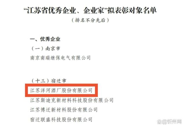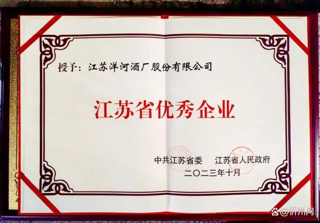 10月23日,江苏省“全省新型工业化推进会”在南京召开,会议表彰了江苏省优秀企业、企业家,洋河股份凭借强大的品牌实力荣获“江苏省优秀企业”。