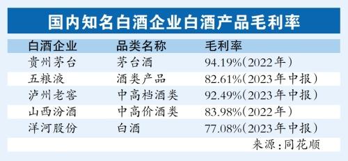 不菲的利润是造假头部名酒现象不断的背后主因。以贵州茅台为例,飞天茅台在市面上就“一瓶难求”,产品零售价更有高溢价。该公司2023年半年报显示,上半年营收695.76亿元,同比增幅达20.76%,贵州茅台自2019年以来半年营收增长率首破20%,净利润359.80亿元,同比增长20.76%。2022年,该公司综合毛利率为94.19%,而2023年上半年,五粮液酒类产品毛利率是82.61%,泸州老窖的中高档酒类毛利率为92.49%。