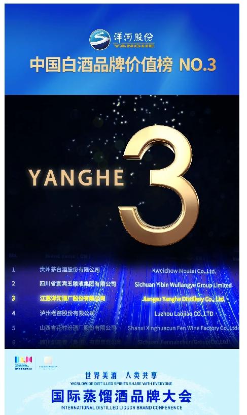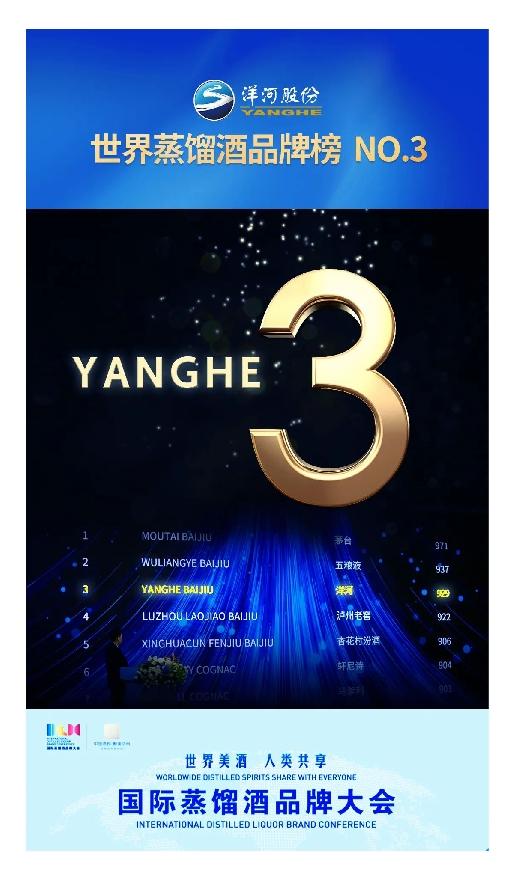 世界第三,洋河新高度!洋河荣登世界蒸馏酒品牌榜