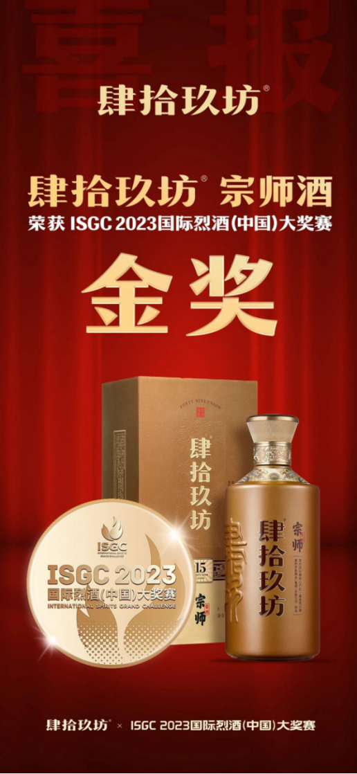 近日ISGC2023国际烈酒(中国)大奖赛结果揭晓,肆拾玖坊宗师酒凭借着高品质和优秀的实力获得了国内外行业内专家,权威机构的一致认可,在本次比赛中斩获了金奖。能够获得这个奖项,是肆