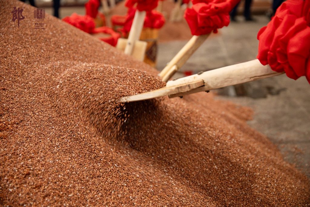在酿造工艺上,青花郎严守“12987”酿造技艺,遵循“端午制曲、重阳下沙”的天时。每一粒青花郎原料郎糯红19号都要历经一年一个周期、两次投粮、九次蒸煮,八次发酵、七次取酒,才能蜕变为原酒琼浆。
