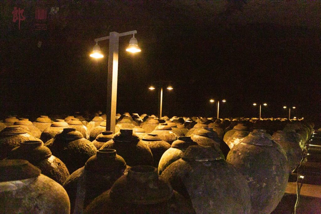 原酒在十里香广场露天贮存,历经酷暑暴晒、寒风呼啸;在千忆回香谷摸星云、接雨露;酒液中的酸、醇、醛、酯类等简单香味物质,在适宜的温度、湿度,稳定的环境条件下,在微生物群落的激发中,相互反应,酒液在时光的流逝中老熟、陈化。