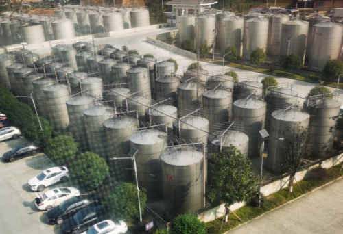 参观完配套服务基地,一行人来到了位于中国酱酒核心产区茅台镇,其酿酒基地与茅台酒厂隔河相望,在这里参观了制曲车间和制酒车间。据介绍公司目前拥有两个酿酒基地,年产能3000余吨,并计划逐步将产能扩建至5000吨。