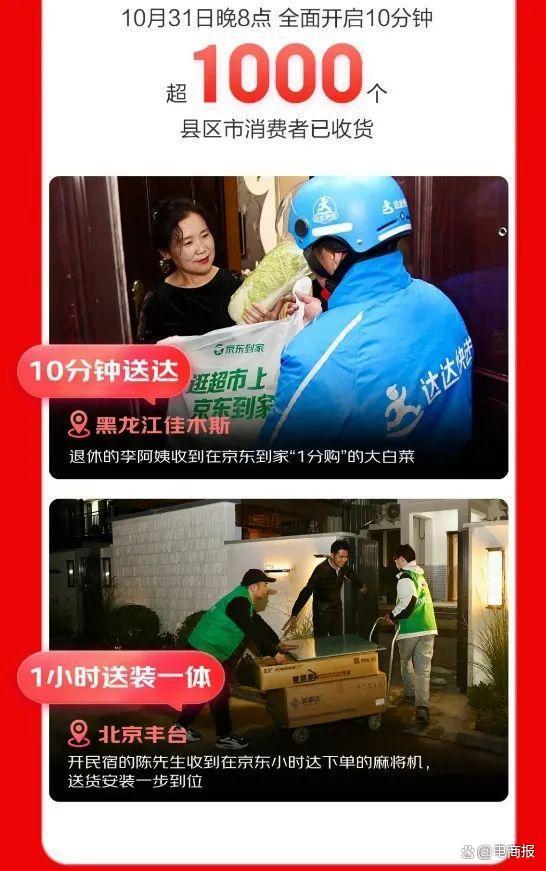 京东双11开启仅10分钟,全国已有超1000个县区市的消费者收到小时达订单。茅台和京东合作后,茅台酱香酒系列配送速度将进一步加快。