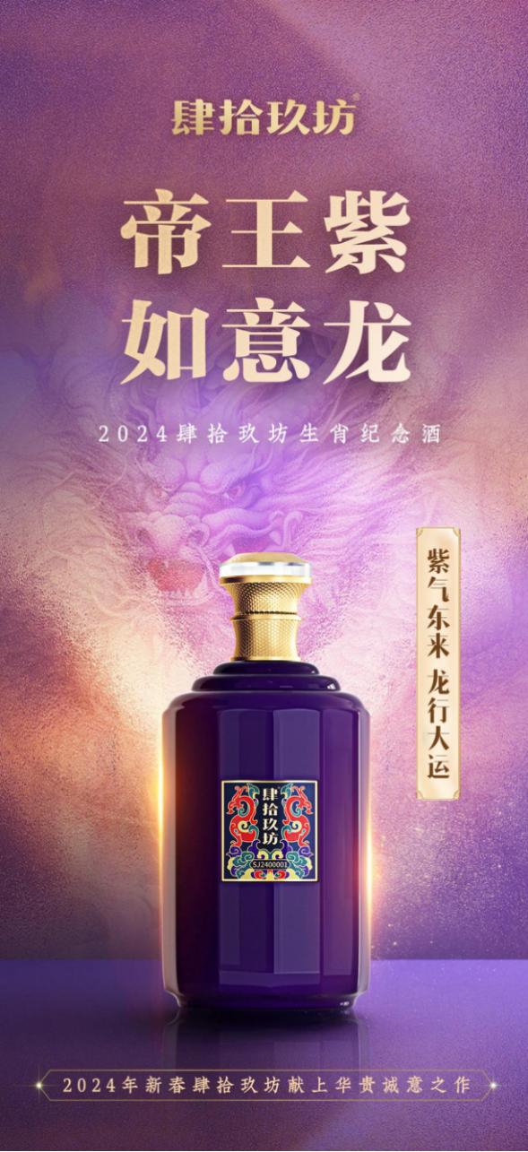 肆拾玖坊龙年生肖酒是2024年新春献上的诚意之作,目的就是能够表达对传统文化和美好生活的期盼,也希望能够通过一款以生肖为主题的美酒,让大家品味中国年。龙年生肖纪念酒整体设计风格都延续了此前肆拾玖坊生肖系列的包装,外包装特意设计的是用金属扣来开启,又通过橱窗的方式来呈现,内部更是有着飞龙在天和花开富贵的手绘,看起来有着满满的年味,也能够充分展示中国传统文化的魅力,整个外盒以紫色为主,华贵典雅,寓意紫气东来。