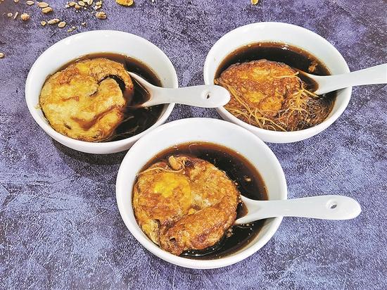 为了更好地推广客家娘酒,李雅伊开了一家以“客家娘酒”为主题的饭店,推出娘酒菜系,除了经典的娘酒鸡、娘酒煮蛋,还有娘酒焗猪手、娘酒焗虾等特色菜,更创新研发了娘酒奶茶、娘酒煮玫瑰花等特色饮品。“最近比较多人点的是娘酒煮蛋,年轻人则更喜欢娘酒奶茶。”李雅伊说。
