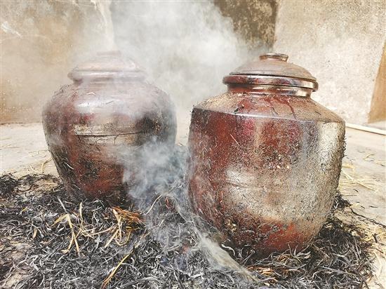 火炙后的酒放置几天去除沉淀物,封好酒坛或分装小瓶放置,待随时饮用。