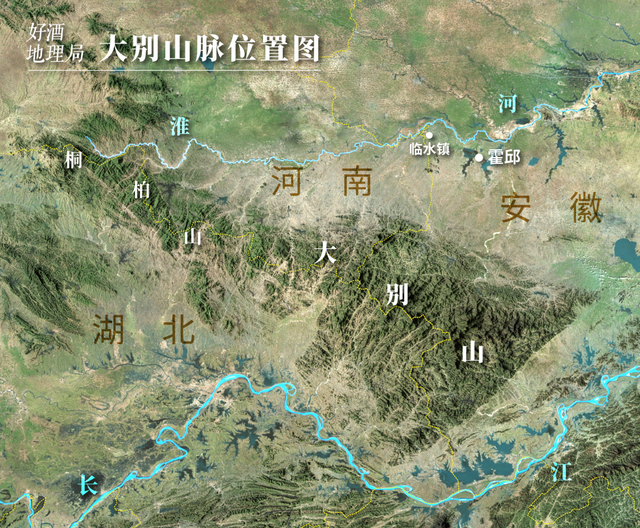 大别山宛如东部平原上突起的巨龟,将河南、湖北、安徽三省界处连为一体。河南省内的桐柏山是它的最西源,同时流出了淮河。湖北省内的黄冈市坐落大别山南麓,居长江中游北岸。