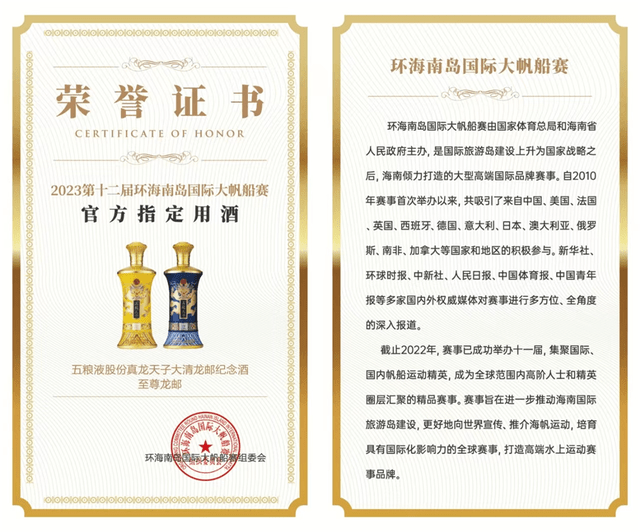 2023第十二届海帆赛官方指定用酒:五粮液股份真龙天子至尊龙邮