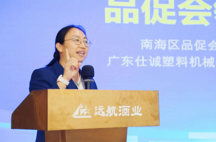 ▲区品促会联合创始人、会长、广东仕诚塑料机械有限公司总经理 秦志红 发言