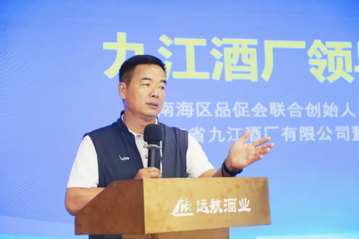 区品促会会长秦志红发表讲话,她首先感谢九江酒厂为区品促会企业代表提供了非常好的交流学习机会,并承诺区品促会后续将继续做好桥梁、纽带作用,开展更多名企参观、主题分享、专业培训、商务交流等活动,实现好渠道、好资源的相互赋能,助推南海品牌企业抱团发展。