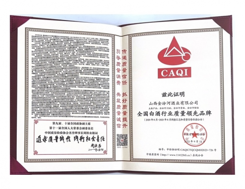时隔4个月后,8月27日,金汾河酒荣获2021-2023中国酒业高质量发展进程“新名酒典范品牌”。8月28日,金汾河酒又荣获2023华北名酒高质量发展“明星品牌”。9月15日, 在由中国质量检验协会举办的2023全国“质量月”企业质量诚信倡议专题活动中,金汾河再次荣获“全国白酒行业质量领先品牌”、 “全国质量检验诚信企业”、“全国质量检验信得过产品”等殊荣。