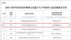 茅台酒酿制技艺拟入国家级非遗生产性保护示范基地名单