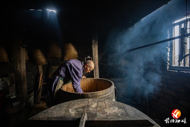 冬日,阳光透过云层,洒在花垣县雅酉镇扪岱村的石屋上,空气中飘着一股淡淡的酒香,混合着谷物粗粝的香气,清冽中带着些许醇厚。 村里的酿酒作坊正在进行秋收后的第一次大规模酿酒。