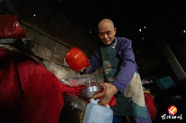 “60公斤到75公斤的玉米,最适合的出酒量在20公斤到30公斤,这是口感最好的。”说罢,隆加才掀开酒坛,浓烈的酒香便争先恐后地钻入鼻腔,新酿的“苞谷烧”口感和香味都符合隆加才的要求,他对“作品”表示满意。