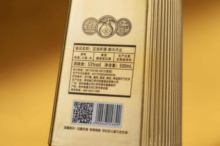 “超高品质、超高性价比”正是——正当年酱酒的最大价值。除此,正当年酱酒(奋斗不止)的高端包装设计、以金色为主色调,寓意正当年奋斗的金色年华!引用伟人毛 泽东沁园春-长沙的诗句:“风华正茂,挥斥方遒”,正是用美酒对生活热情奔放的体现;攀爬的素描图案,正是对人生正当年奋斗不止的诠释!正当年酱酒倡导人们树立正能量,努力奋斗为核心文化来打造和树立品牌。