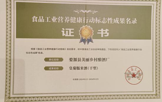 江西婺源皇菊糯米酒荣膺营养健康行动标志性成果
