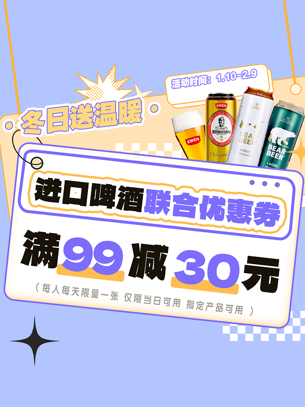 在这个快节奏的社会中,有时候,与越是亲近的家人之间的相处,越可能被忽略。而一杯好酒可以在暖心暖身的同时助力温情一刻的回归。好酒一开,芬芳四溢,亲友相聚,交流彼此生活的点滴故事, 温馨的此刻,无形的感情纽带变得更为紧密。因而,自1月10日起至2月9日,永辉生活-咏悦汇酒库将发放进口啤酒满99减30元联合优惠券(每人每天限量一张 仅限当日可用 指定产品可用 ),有豪铂熊拉格啤酒500ml*6、意文小麦啤酒500ml、豪铂熊小麦啤酒500ml等产品参与活动,苦乐参半的啤酒花散发出独有的香气,酒液柔和醇正,品味温暖时光。