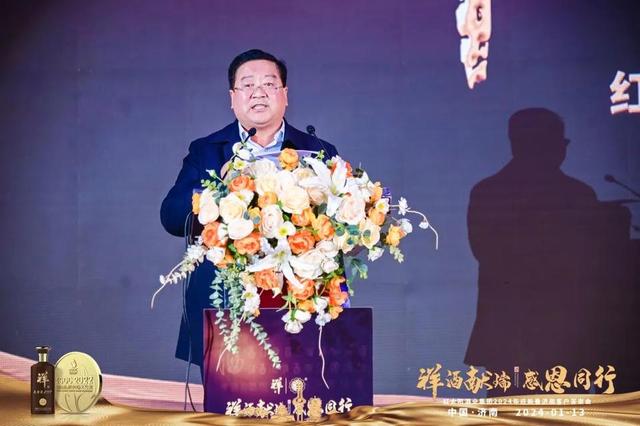 答谢会上,红太阳酒业集团总经理任志刚在致辞中介绍了企业近年来的发展情况,并向与会的各位领导和老乡客户们表达了真诚的谢意。他表示,2023年,是红太阳创牌30周年和祥酒研发上市40周年,三十年、四十载的历程,既是承上启下、继往开来的里程碑,也是拼搏奋进、再创辉煌的新起点,红太阳酒业将把企业打造成品质红太阳、科技红太阳、智能红太阳、生态红太阳、人才红太阳、文化红太阳,为地方经济发展贡献红太阳力量,为广大消费者奉献来自济宁大地的品质好酒和文化名酒。