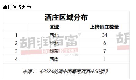 50强酒庄中,49家位于北方地区,仅云南的敖云酒庄位于南方地区。