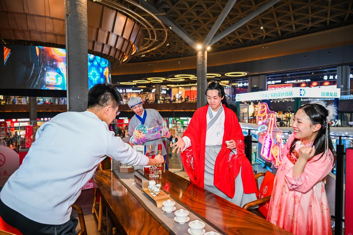 具体来看,“喊麦接龙”活动将“尔滨流行语、网络热词、与酒相关的诗词”及喊麦进行了有机融合,通过五掌柜和游客对接暗号、诗词互动等形式,传播中华传统文化,烘托节日气氛,尽情释放“显眼包”们冰雪“撒欢”的活力和激情。
