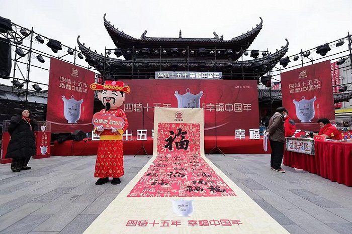 活动前期,四特活动人员还曾身披火红年装,走上街头收集关于“幸福”的语录,向市民送去金三两品鉴小酒及“四特送福·礼敬万家”礼品券,献礼幸福中国年。同时,万寿宫内还开展了派送春联活动,并搭设了新春集市,展示非遗捏泥人表演和非遗花鸟画,设置好玩的有奖互动体验游戏。四特酒以丰富的活动形式,把快乐进行到底,将幸福传递万家。