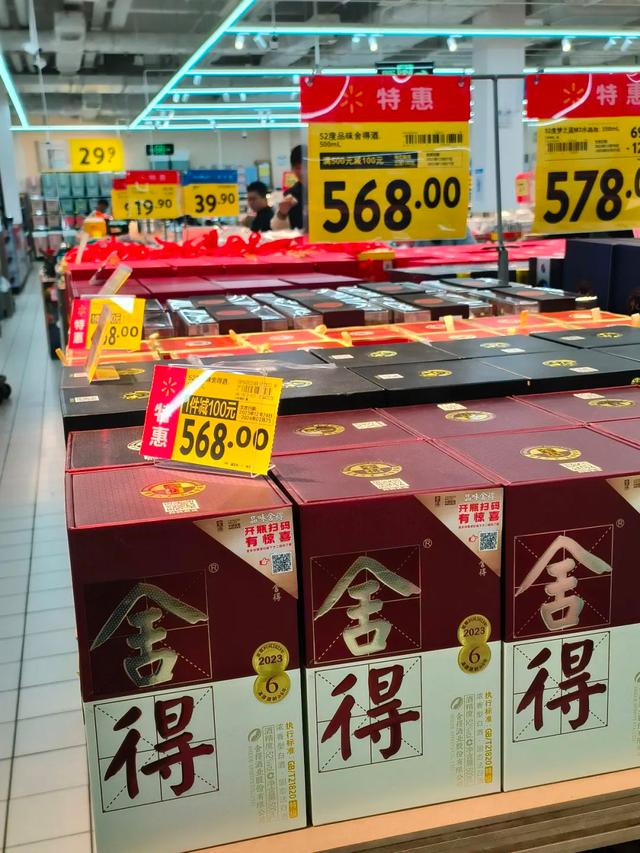 而在大润发商超中,记者也同样看到五粮液、习酒等多个知名品牌进行促销活动,西凤酒、金沙酒等酒企的活动力度更大,消费者购买53度金沙古酱和52度西凤酒年份封藏酒,再加1元即可多得一瓶。