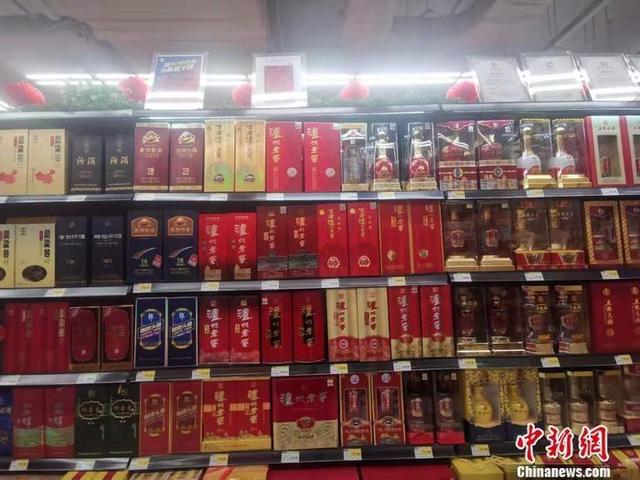 资料图:市民在福建福州的一超市贵州茅台酒专柜了解信息。 中新社记者 吕明 摄