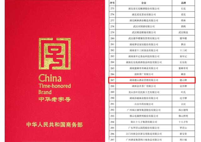 德酒的历史源远流长,扎根常德72年的德山酒,用实际行动践行了“一群人一辈子只为酿就一瓶良心好酒”的传承,为德酒发展添上浓墨重彩的一笔。2024年2月1日,德山酒业“德山牌”被商务部认定为中华老字号,这也是湘酒企业中唯一的中华老字号。