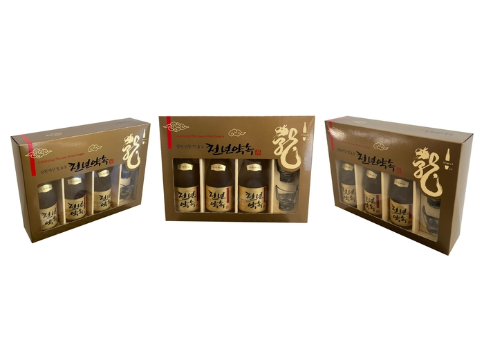 近日,韩国金蓝株式会社为庆祝青龙年推出桑黄发酵酒“千年约定”特装包装并开始销售。该套装包含3瓶Millennium Promise和2个适合品尝Millennium Promise的玻璃杯。
