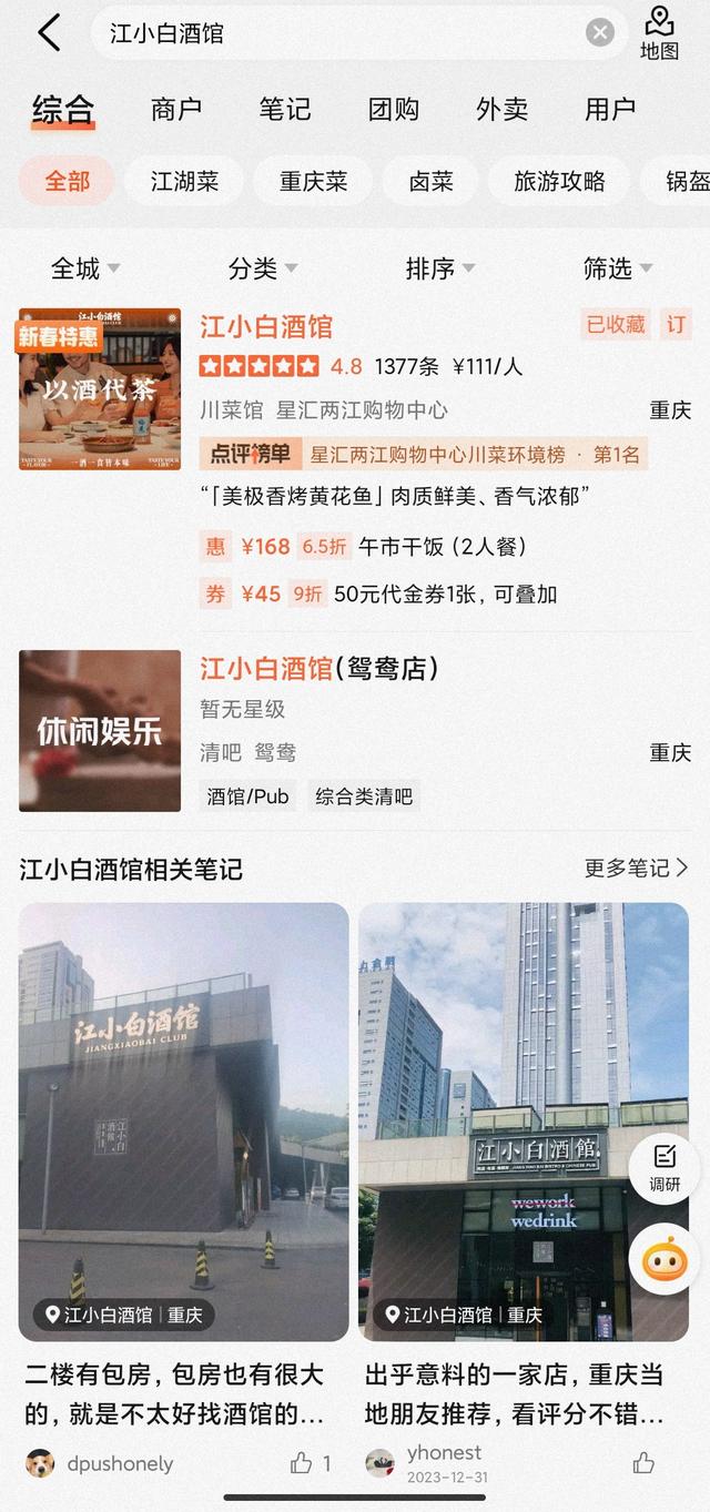 如今,磁器口店已经更名,江小白酒馆仅剩重庆星汇两江店还在正常营业。
