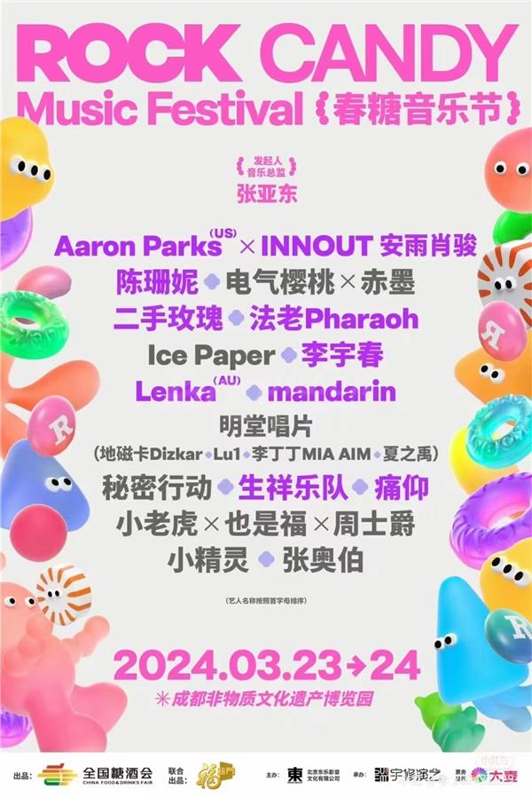 成都市不仅是会展之都,美食之都,还是音乐之都。3月23日至24日,“ROCK CANDY春糖音乐节”作为全国糖酒会的首次尝试,将与来蓉百万客商及观众,共同探索潮流及传统音乐的多元融合方式。国内、国外知名音乐人参演,流行、摇滚、嘻哈、爵士、电子等多种曲风汇聚,让不同种类、风格的表演在碰撞中产生出奇妙的效应,依托全国糖酒会的流量资源,确保音乐节的高品质呈现,倾力打造一场“好看、好听、好吃”的“三好”音乐盛宴,培育一个全新的国际级音乐节品牌。