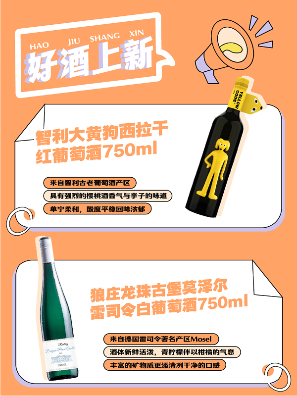 作为独立的个体,女性不应被物化与附庸化,不必让步于世俗的偏见,可以结婚生育,可以不结婚不生育,可以走向越来越多承载自由意志的具象可能。在广阔的世界里,每个人都值得拥有自由舒展的人生。好酒一开,鼓足勇气向恣意人生出发,永辉生活-咏悦汇酒库推出好酒上新活动,智利大黄狗西拉干红葡萄酒750ml,来自智利古老葡萄酒产区,具有强烈的樱桃酒香气与李子的味道,单宁柔和,酸度平稳,回味浓郁,狼庄龙珠古堡莫泽尔雷司令白葡萄酒750ml,来自德国雷司令著名产区Mosel,酒体新鲜活泼,青柠檬伴以柑橘的气息,丰富的矿物质更添清冽干净的口感。