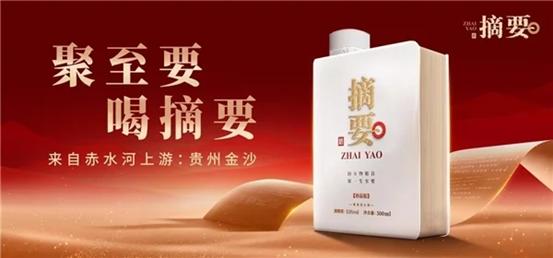 摘要酒是金沙酒业旗下高端酱香白酒,有着深厚的历史底蕴。摘要来自赤水河上游贵州金沙,坚守传统大曲酱香回沙工艺,沿用近百年的原生古窖,传承“12987”古法酿造,醇柔酱香风味独特,回味悠长。产品外观上,摘要酒瓶身创意设计成书本的形状,创造“书型瓶+红圈”两大超级符号,充分呈现品牌所承载的中华传统文化。