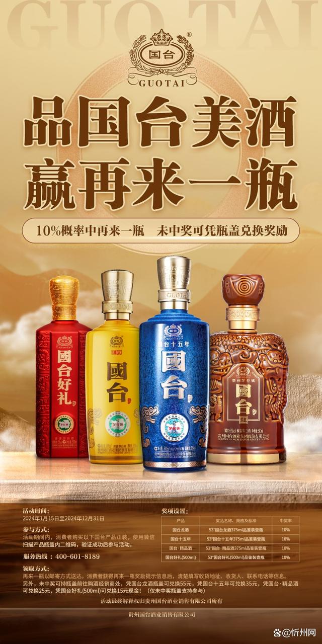 据了解,2024年国台针对消费端开展了一系列回馈消费者活动,其中“开盖有奖”活动反响尤为强烈。国台官方相关信息显示,“开盖有奖”活动将贯穿2024年全年,活动范围包括国台龙酒、国台十五年、国台·精品酒和国台好礼酒。活动规则为:使用微信扫描盖内二维码,抽中再来一瓶,即可获得相应产品品鉴装奖励。该活动不仅力度大,中奖率也达到10%。