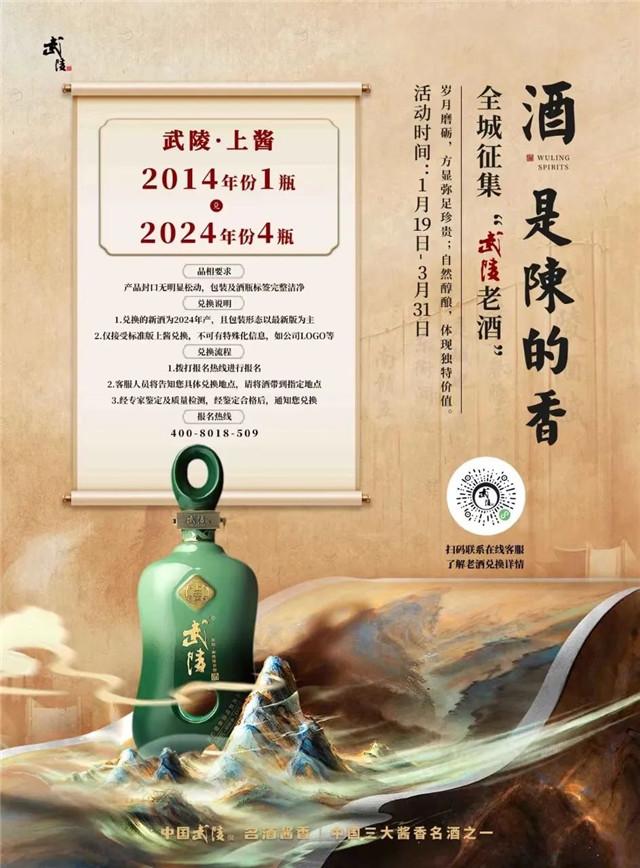 目前,“以1兑4”,武陵酒2024年上酱老酒回收活动正在火热进行中。事实上,武陵酒的老酒回收活动,已经举办多年,参加兑换的产品从中酱、武陵王到上酱,不断升级。为何武陵酒持续倡导存新酒喝老酒?近日,武陵酒文化学院相关负责人在接受采访时表示,“老酒,是对企业综合实力的一个评价。所谓酒是陈的香,更多的是一个价值的体现。”