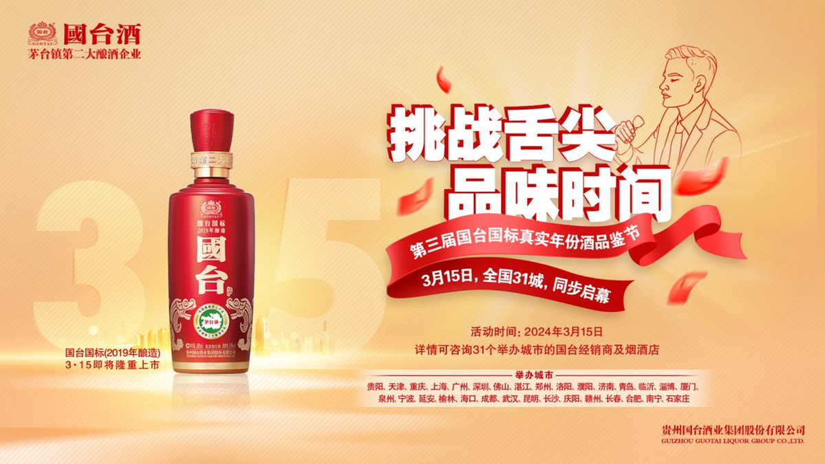 3月15日当天,国台将在贵阳设置主会场,30个城市设置分会场,31个城市一起见证国台国标酒(2019年酿造)发布,并同步举行“挑战舌尖·品味时间——第三届国台国标真实年份酒品鉴节”。届时,参与者将品鉴国台国标酒(2012-2019年酿造)全部产品,体验真实年份酱酒魅力的同时,完成分辨产品对应酿造年份的挑战。