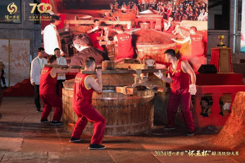 2024年,是泸州老窖酒传统酿制技艺不断代传承的第700年。3月11日,以“匠心传浓脉,荣耀700年”为主题,2024泸州老窖“怀玉杯”酿酒技能大赛在持续451年酿造生香的1573国宝窖池群内精彩上演。两位酿酒师以攻擂和守擂的方式,展开泸州老窖酒传统酿制技艺巅峰对决,生动演绎了700年酿艺的活态传承。