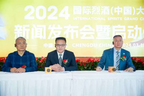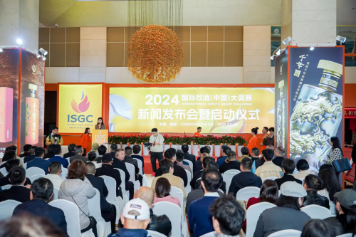 3月18日上午,2024ISGC国际烈酒(中国)大奖赛新闻发布会,在成都锦江宾馆贵宾楼一楼大厅举行。