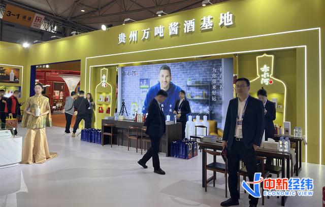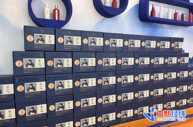 中新经纬注意到,该展区一侧堆满了“梅西代言赤水河酒-限量珍藏版”的包装箱,现场也有大幅梅西代言照片。