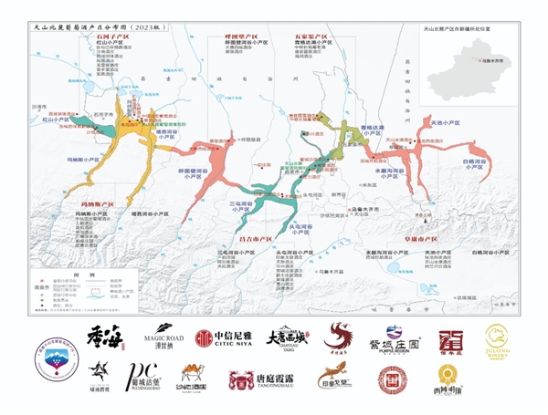 天山北麓葡萄酒产区是新疆种植基地最多、产能产量最大、优秀产区,为新疆葡萄酒“4+2”产区布局之首,也是全国重要的葡萄原酒供应基地之一。国内龙头企业的中信尼雅葡萄酒业、张裕、中粮长城、王朝酒业均在产区落户,同时还培育打造了印象戈壁、华兴庄园、大唐西域、香海国际、唐庭霞露、瑶池西夜等一批在疆内外有一定影响力的特色酒庄。荣获全国第一个酿酒葡萄认证小产区、连续五年发布葡萄酒类“食品安全”。产区先后荣获“中国葡萄酒之都”、“世界美酒特色产区”、“中国优质酿酒葡萄之乡”、“中国质量安全标杆产区”等多项殊荣。这里酿造的葡萄酒获得布鲁塞尔国际葡萄酒大赛、品醇客国际葡萄酒大赛等国内外著名葡萄酒赛事大金奖、金奖等1000余项。